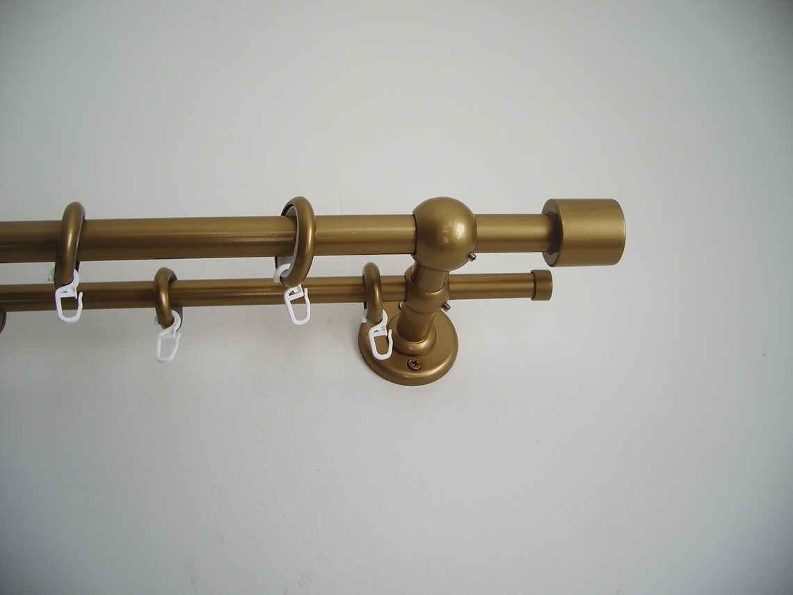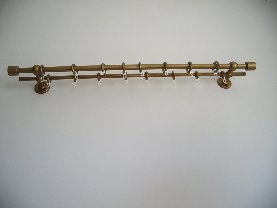Double curtain rod with two different pipes for windows and doors with steel rings and hooks.