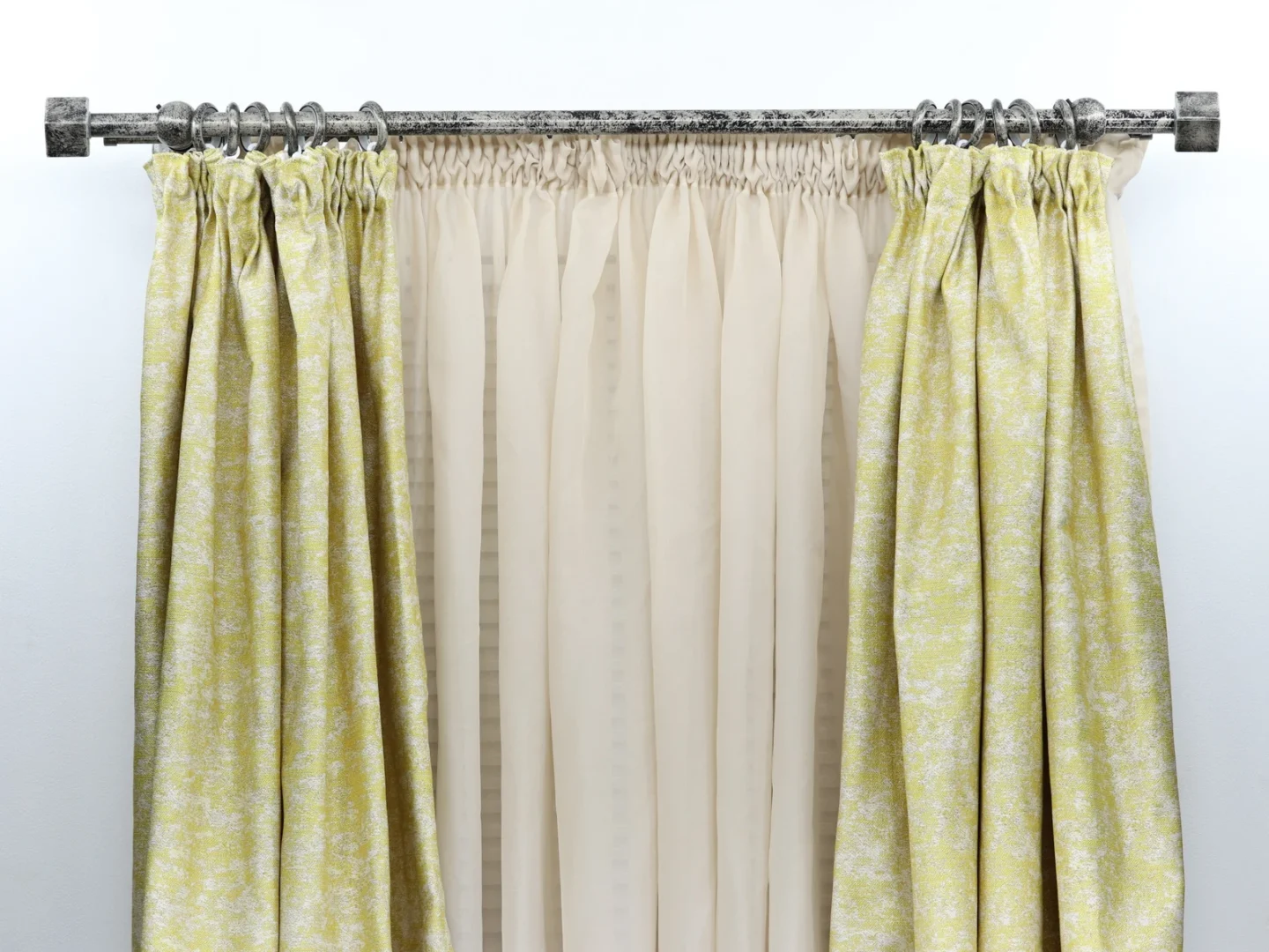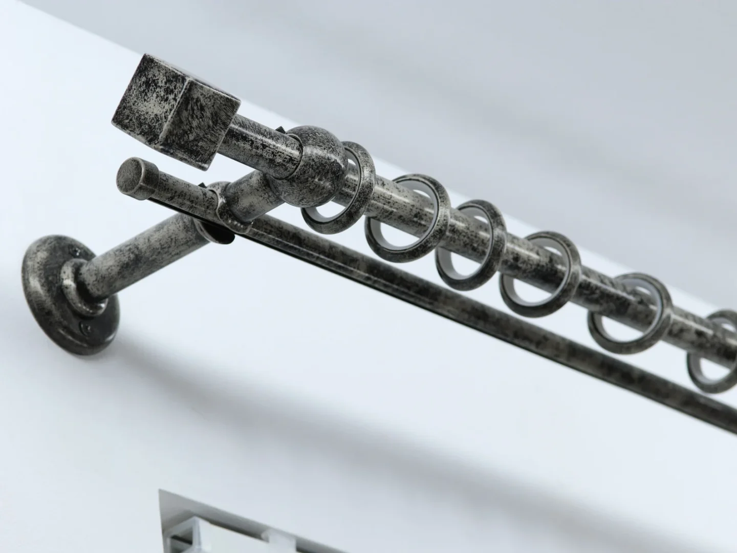 Double curtain rod & rail is combination with two different poles(rod- ø22mm and rail ø16mm in diameter) for windows and doors with steel rings and hooks + plastic rollers. This is a unique combination between a classic style curtain rod with metal rings (front) and a modern rail with hidden plastic sliders (back).