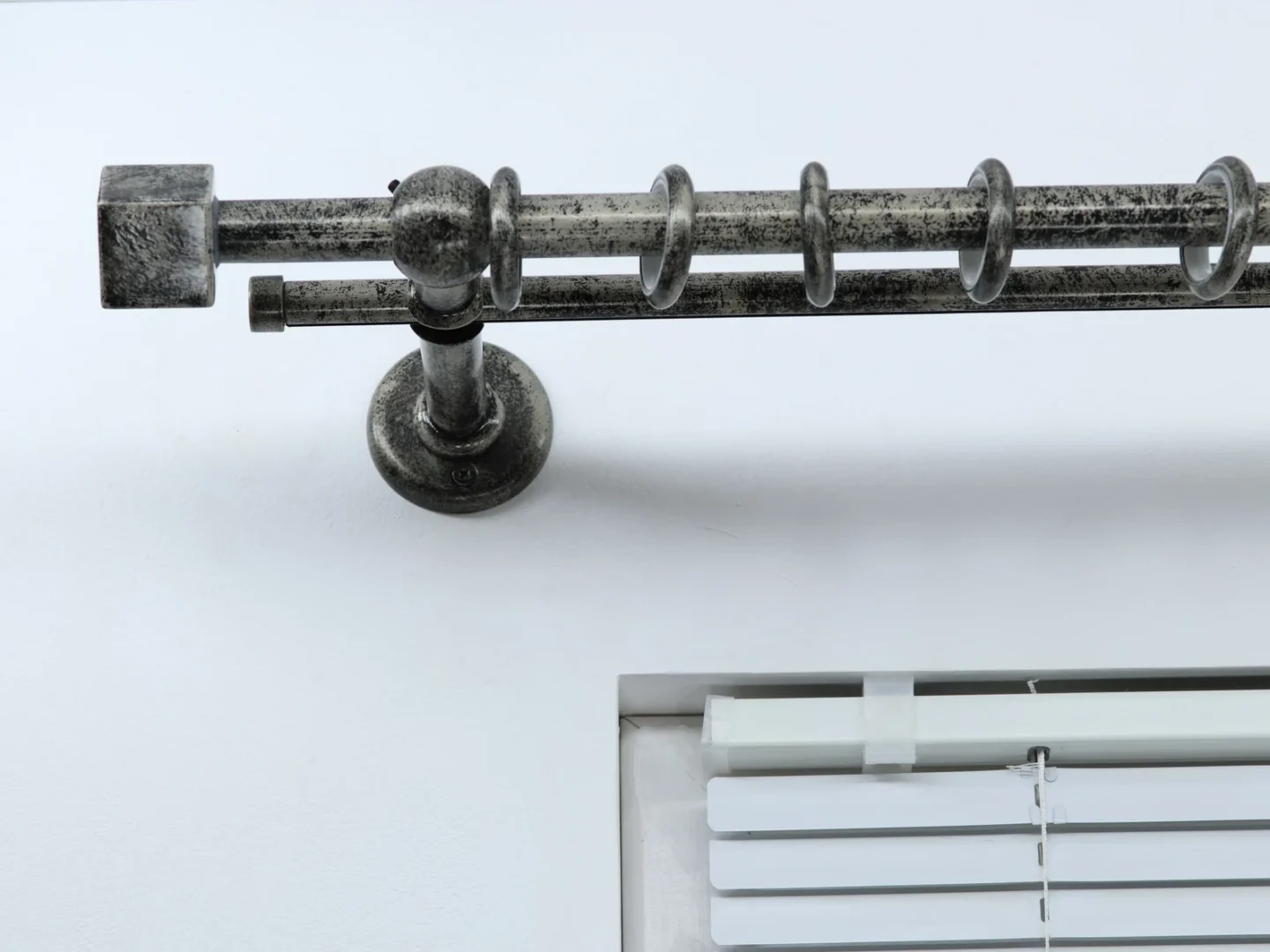 Double Curtain Rod & Rail with Different Pipes for Window, Steel Rings and Hooks, Rollers, Double Long Wall Brackets and Cube Ends