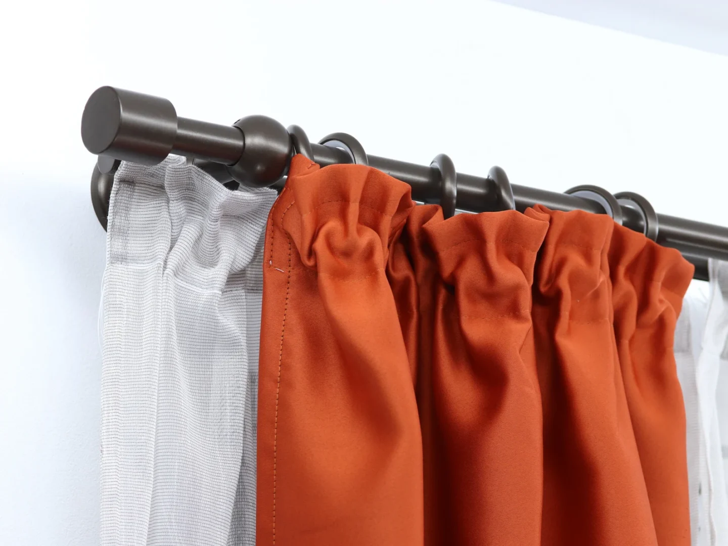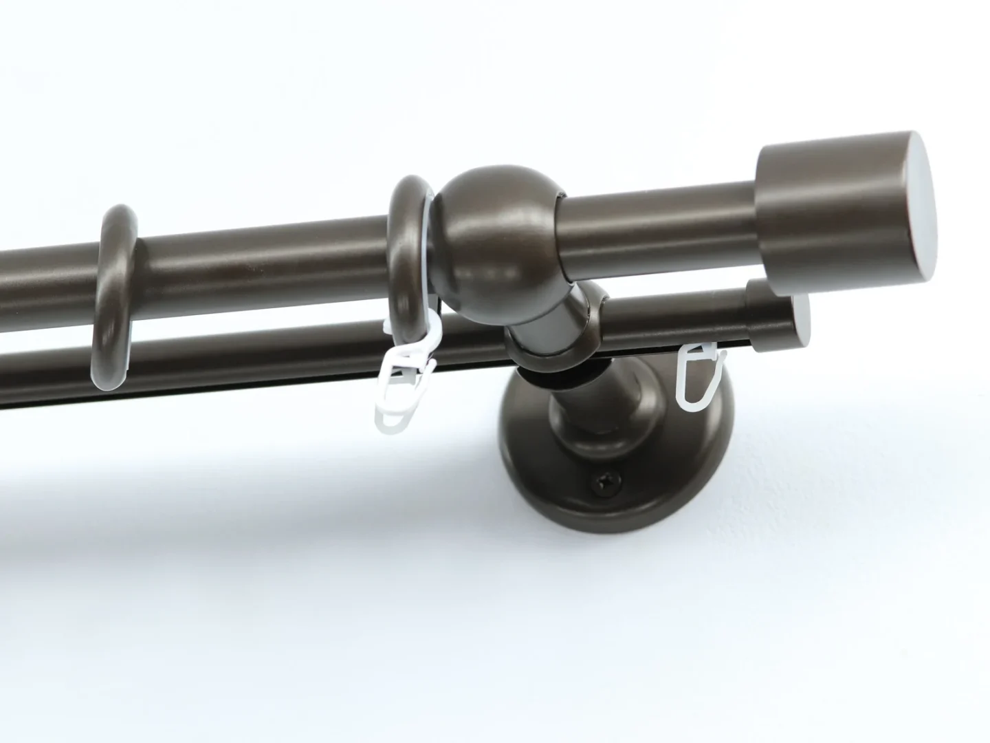 Double Curtain Rod & Rail with Different Pipes for Window, Steel Rings and Hooks, Rollers, Double Standard Wall Brackets and Cylinder Ends