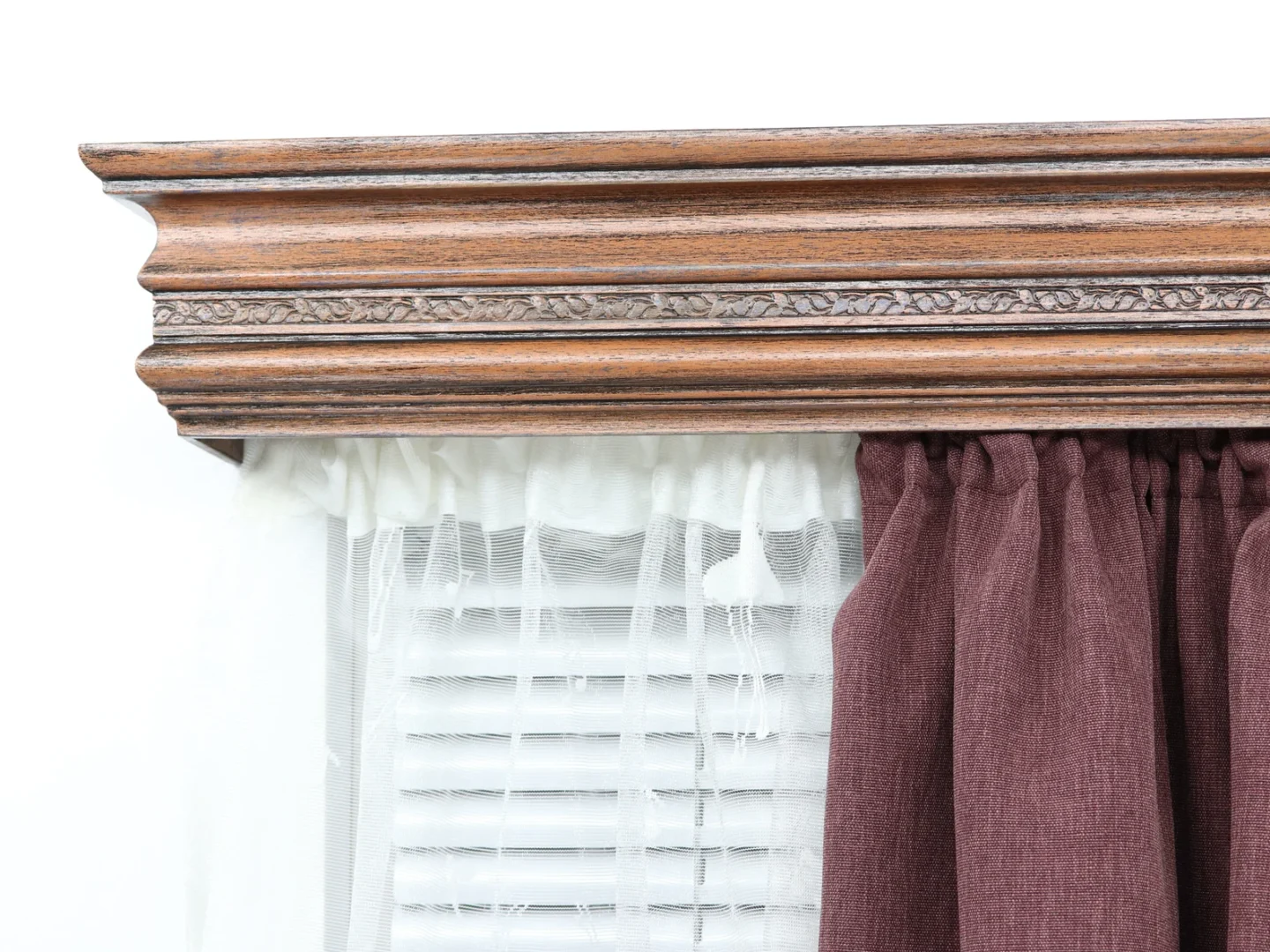 Double wooden window cornice and rail- farmhouse wooden cornice with wood valance for windows and doors with plastic sliders, for wall montage and color finish of your choice.