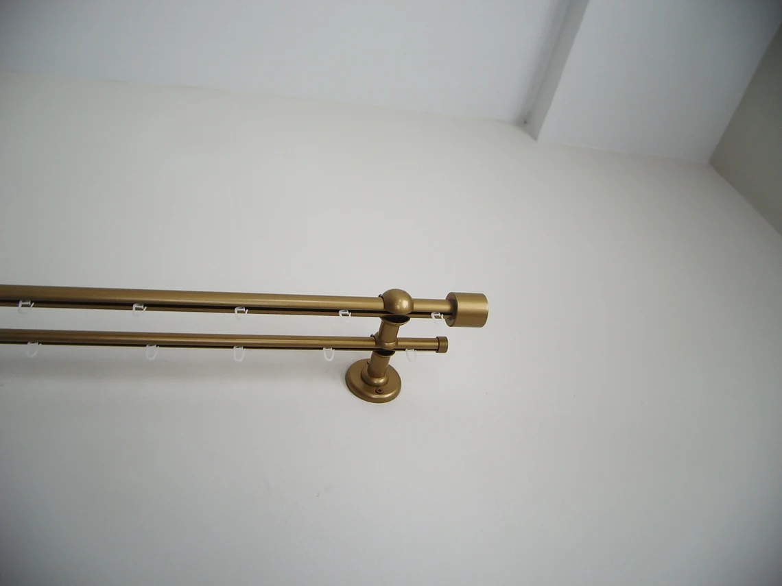 Double Curtain Rail Different Pipes for Window with Rollers, Double Wall Brackets and Cylinder Ends