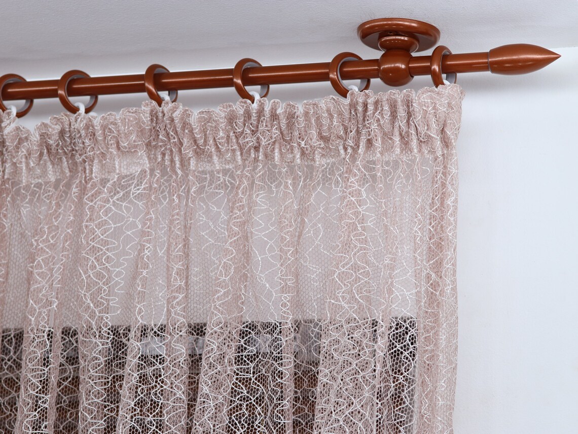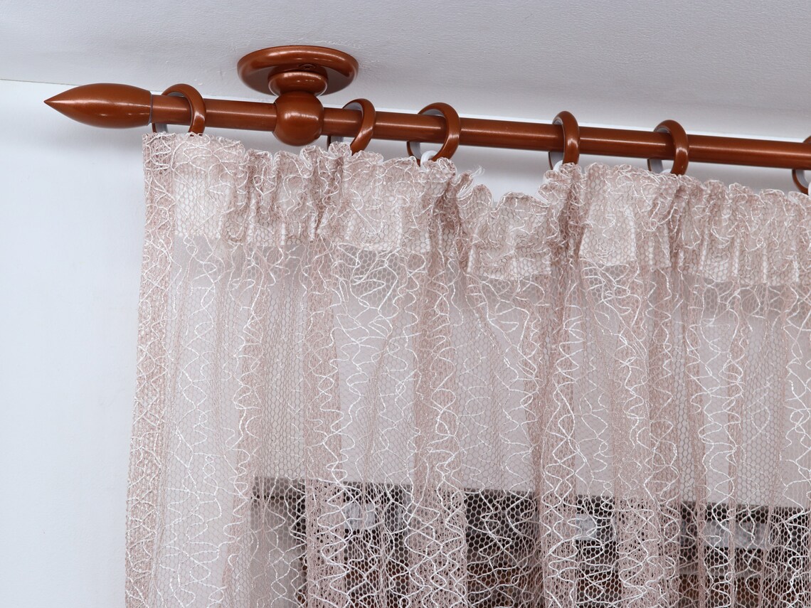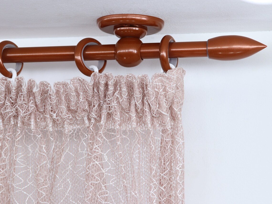 Single curtain rod for windows and doors with steel rings and plastic hooks (classic style curtain rod).