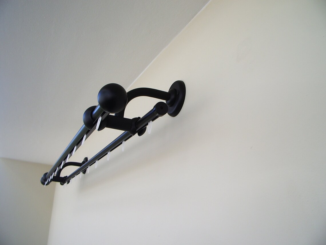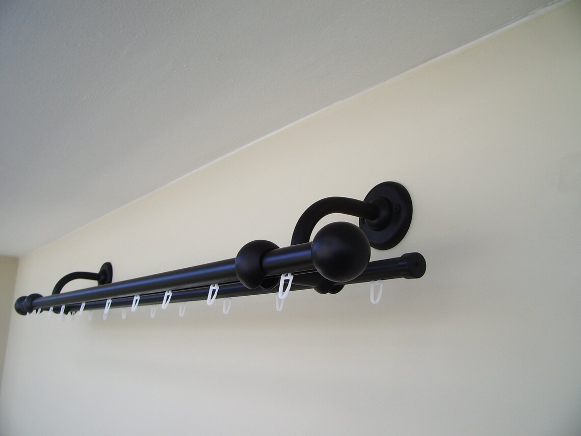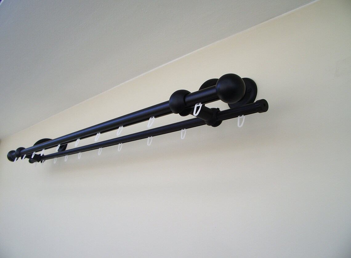 Double curtain rail with two different pipes for windows and doors with rollers.