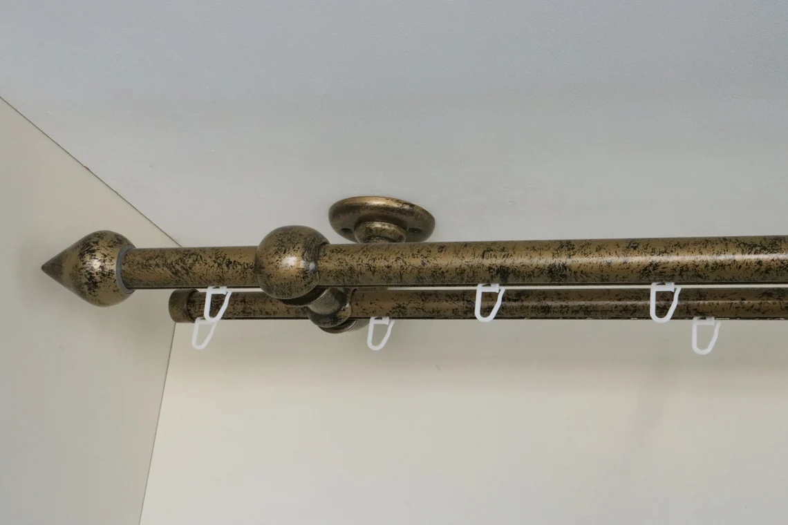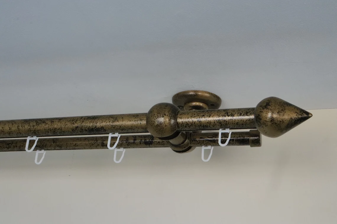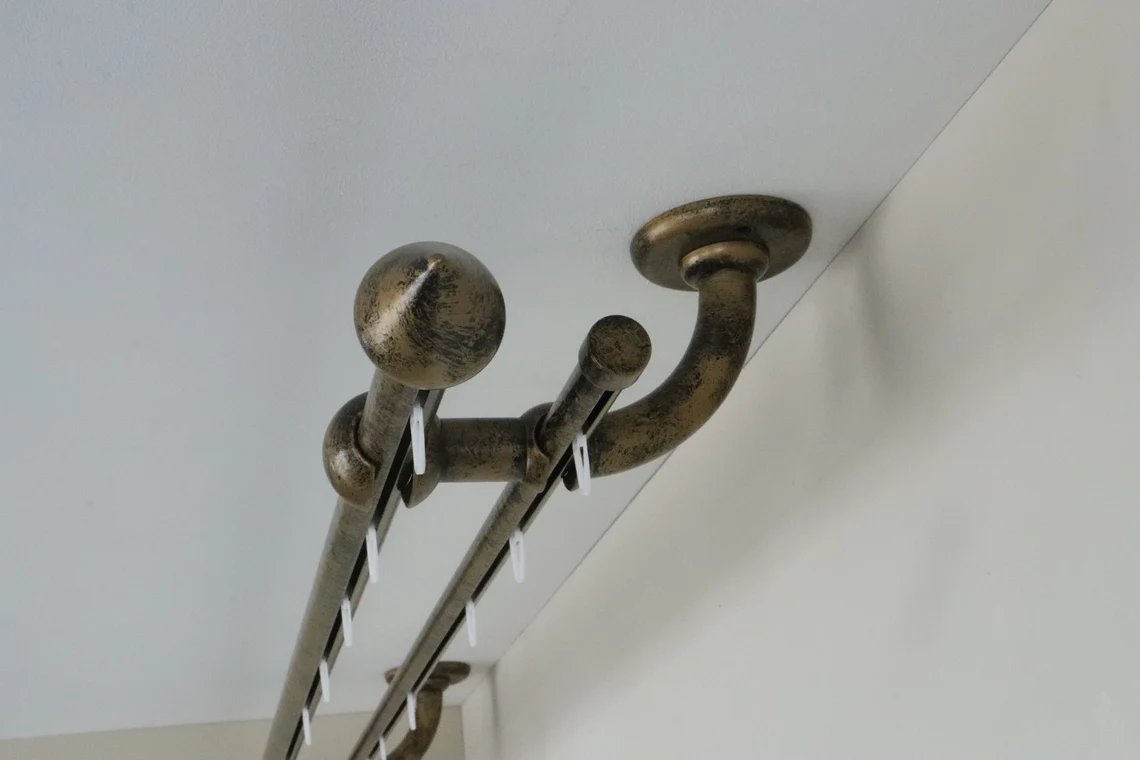 Double Curtain Rail with Different Pipes for Window with Rollers, Double Curved Wall Brackets and Bell Ends