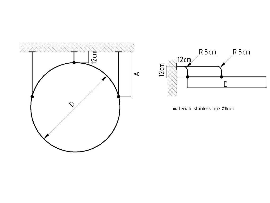 The distance from the wall to the circle rod is 12 centimeters (see drawing- photo 3).