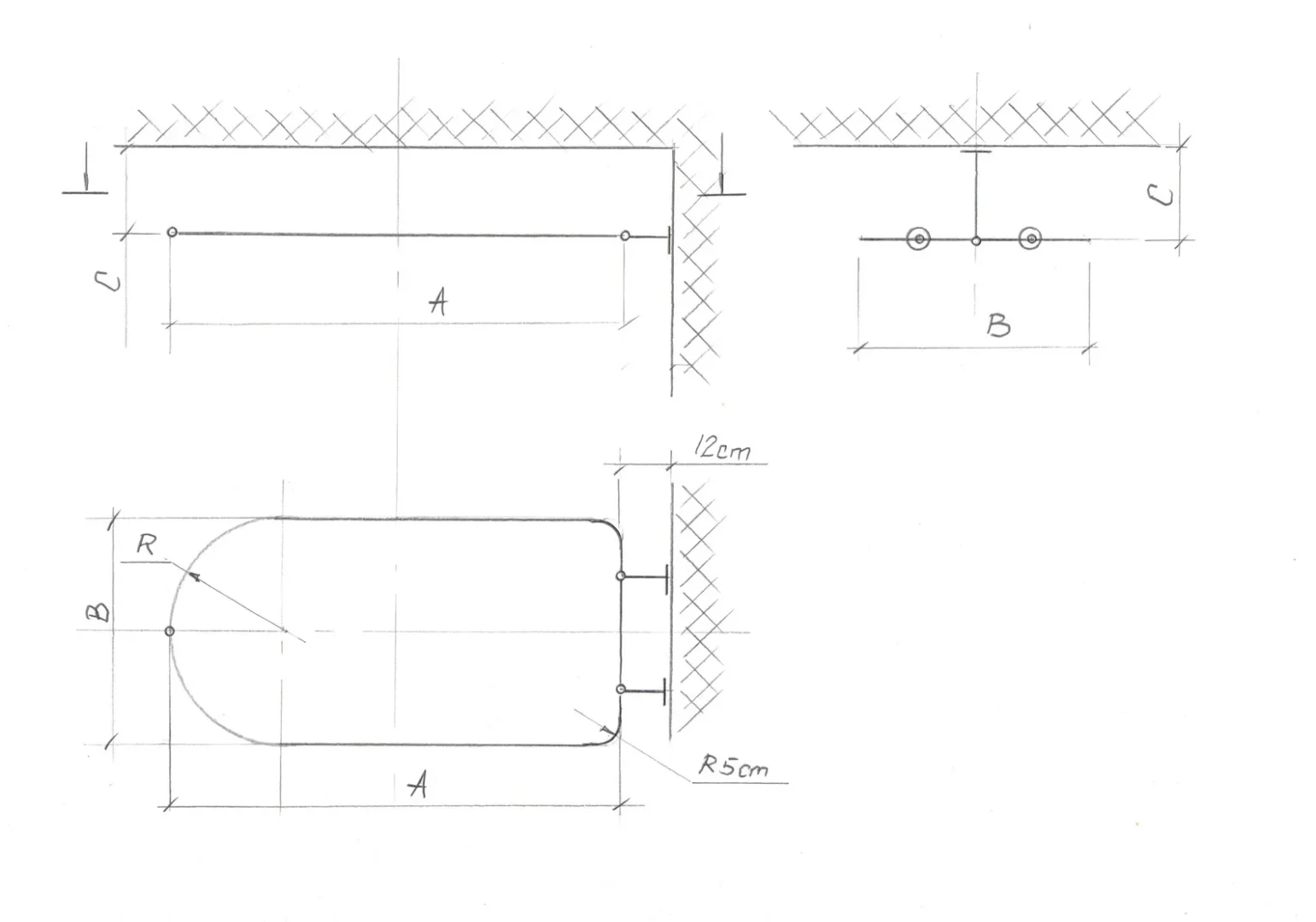 *The supports(ceiling and wall brackets) cannot be cut because they are threaded! So the construction is stronger and stable. I always make the supports according to the size of customer.*