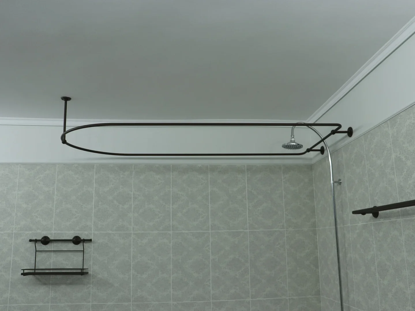 Semi Oval & Square Shaped 360 degrees Shower Curtain Rod for Bathroom with 1x Front Ceiling Bracket and 2x Back Wall Brackets at Custom Size