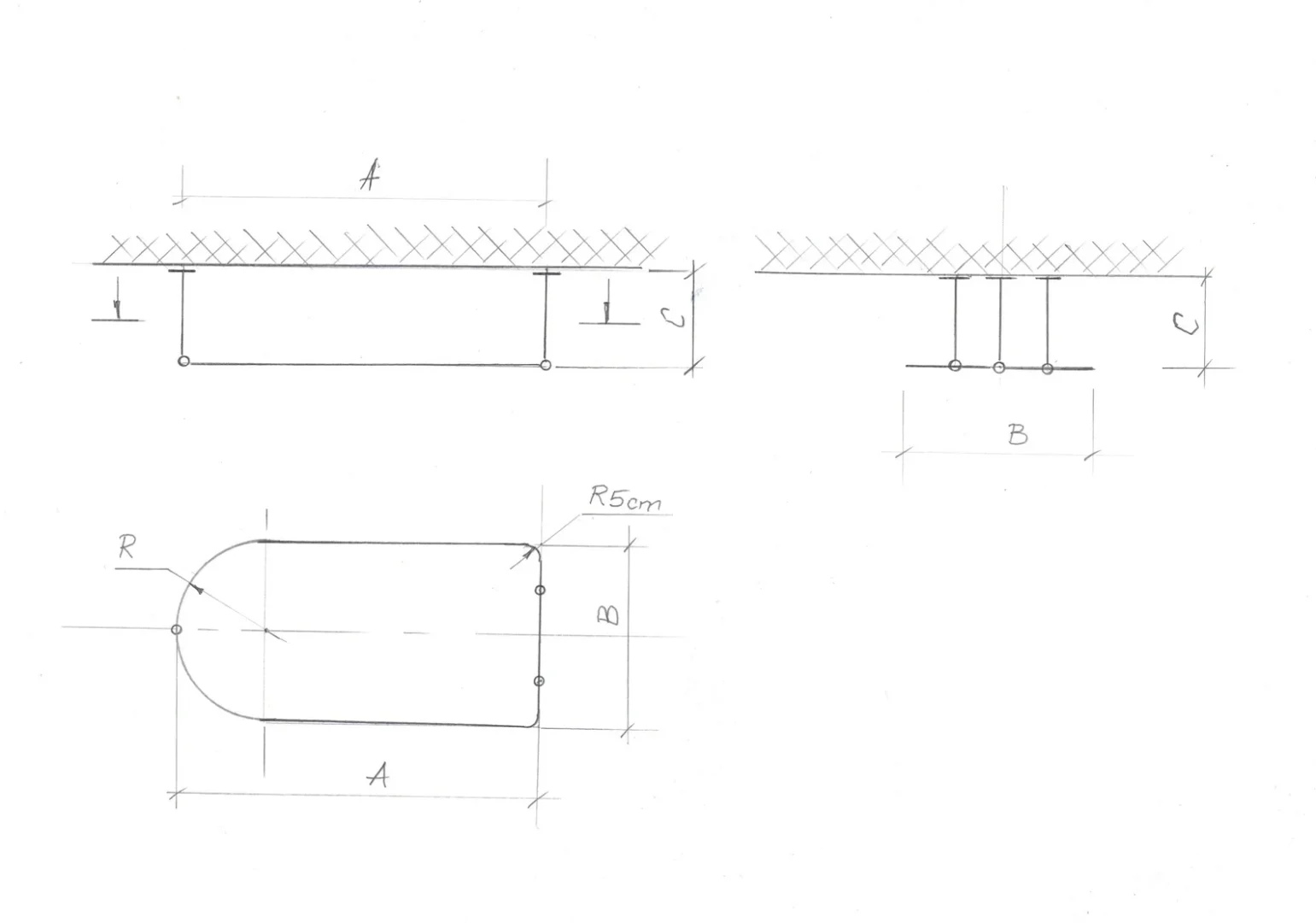 You also need to write the distance from ceiling to the oval (C- length) in centimeters / * 1 inch=2.54 cm)