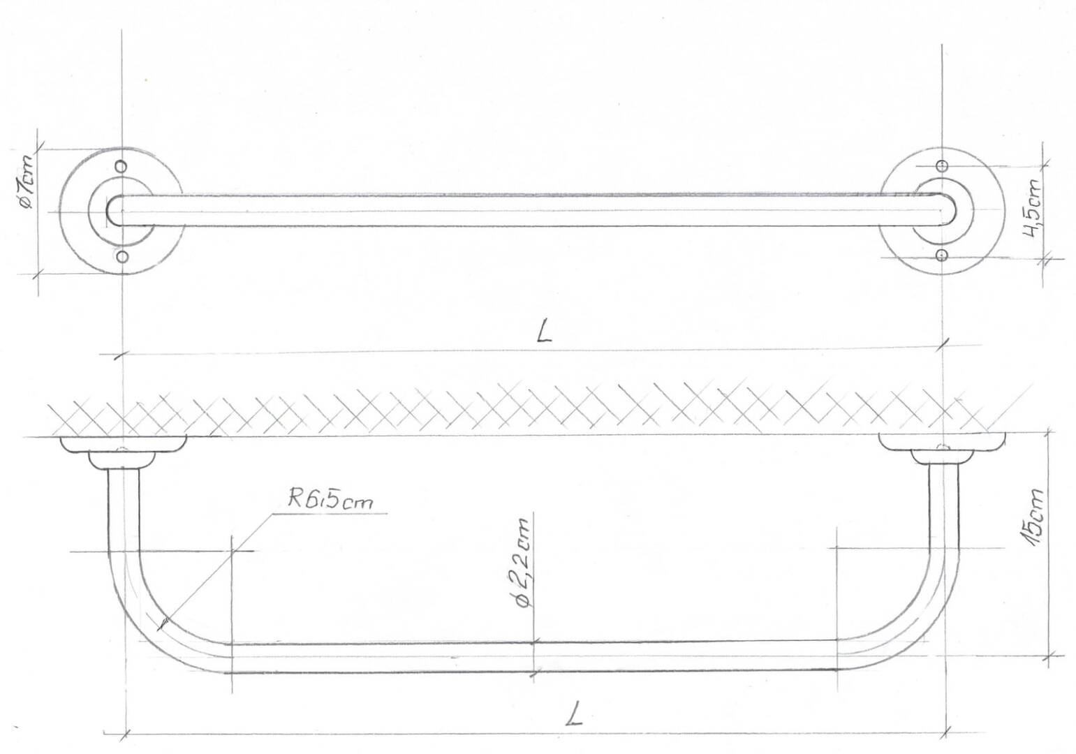 This model is French bent finish for wall mountings(flanges) with 2 screws. This rod is quite stable even for heavy curtains because it is in ø22mm in diameter.
