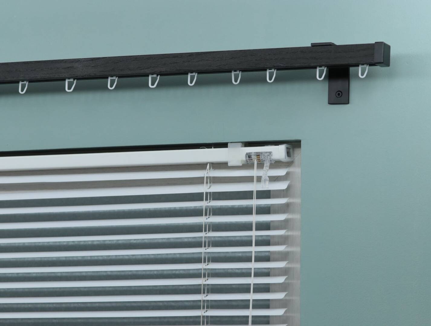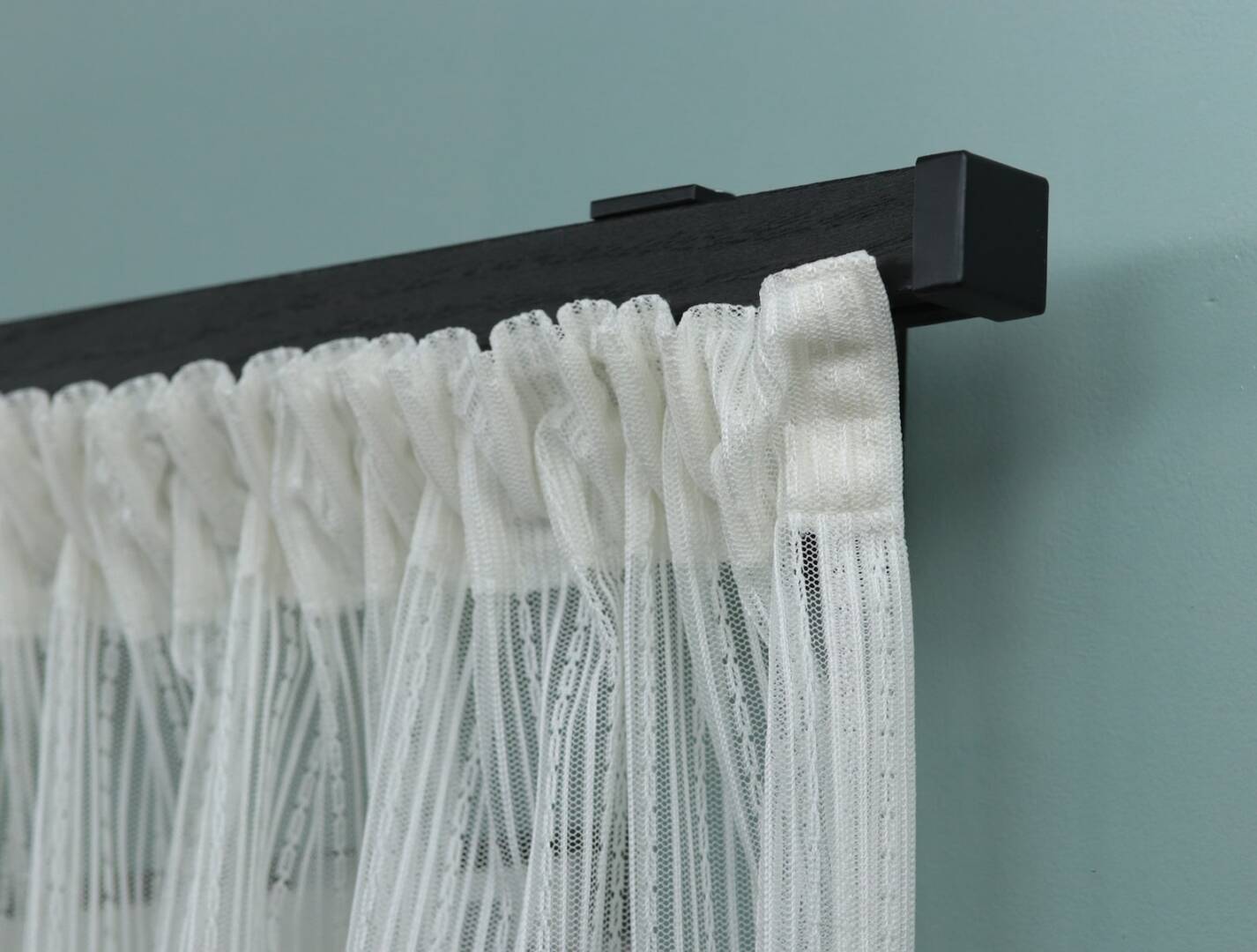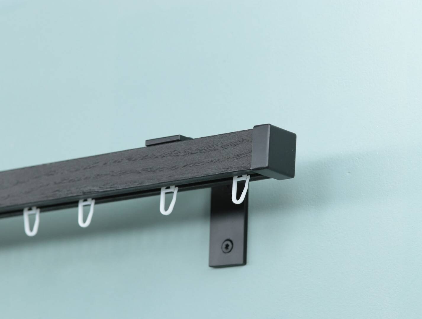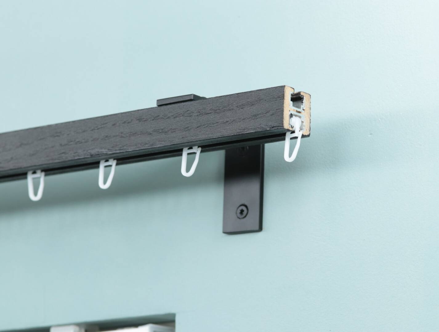 Solid wooden rail with built-in aluminum profile for smooth movement of the rollers and easy movement of the curtain.