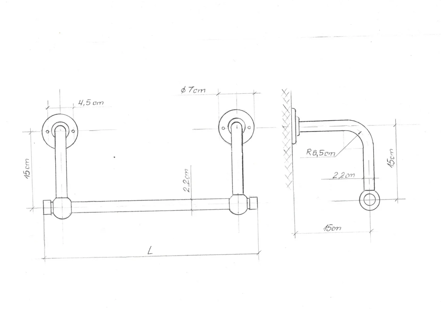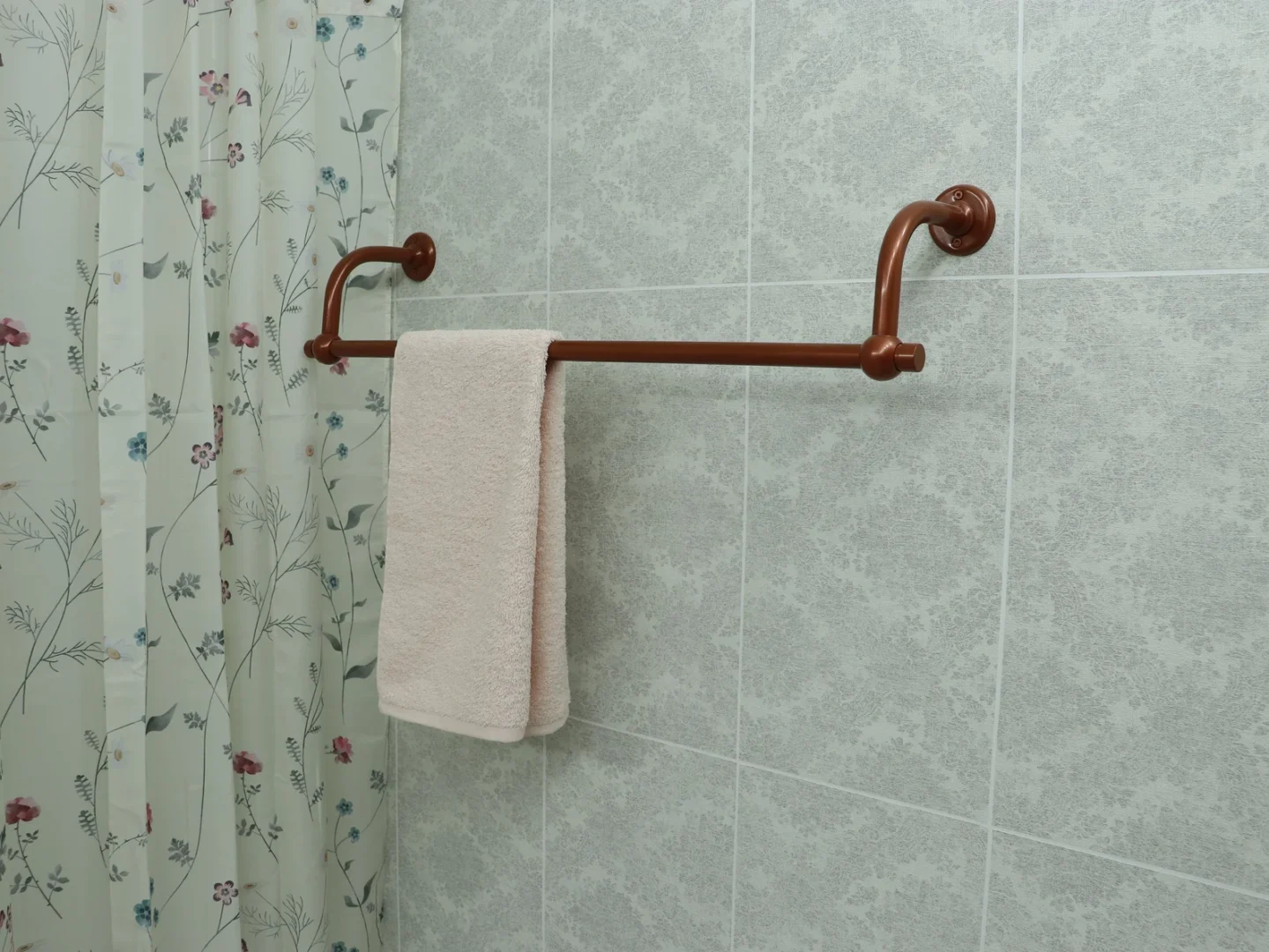 U shaped shower towel rack and hanger, single rod and curved brackets in 22 millimeters thick.