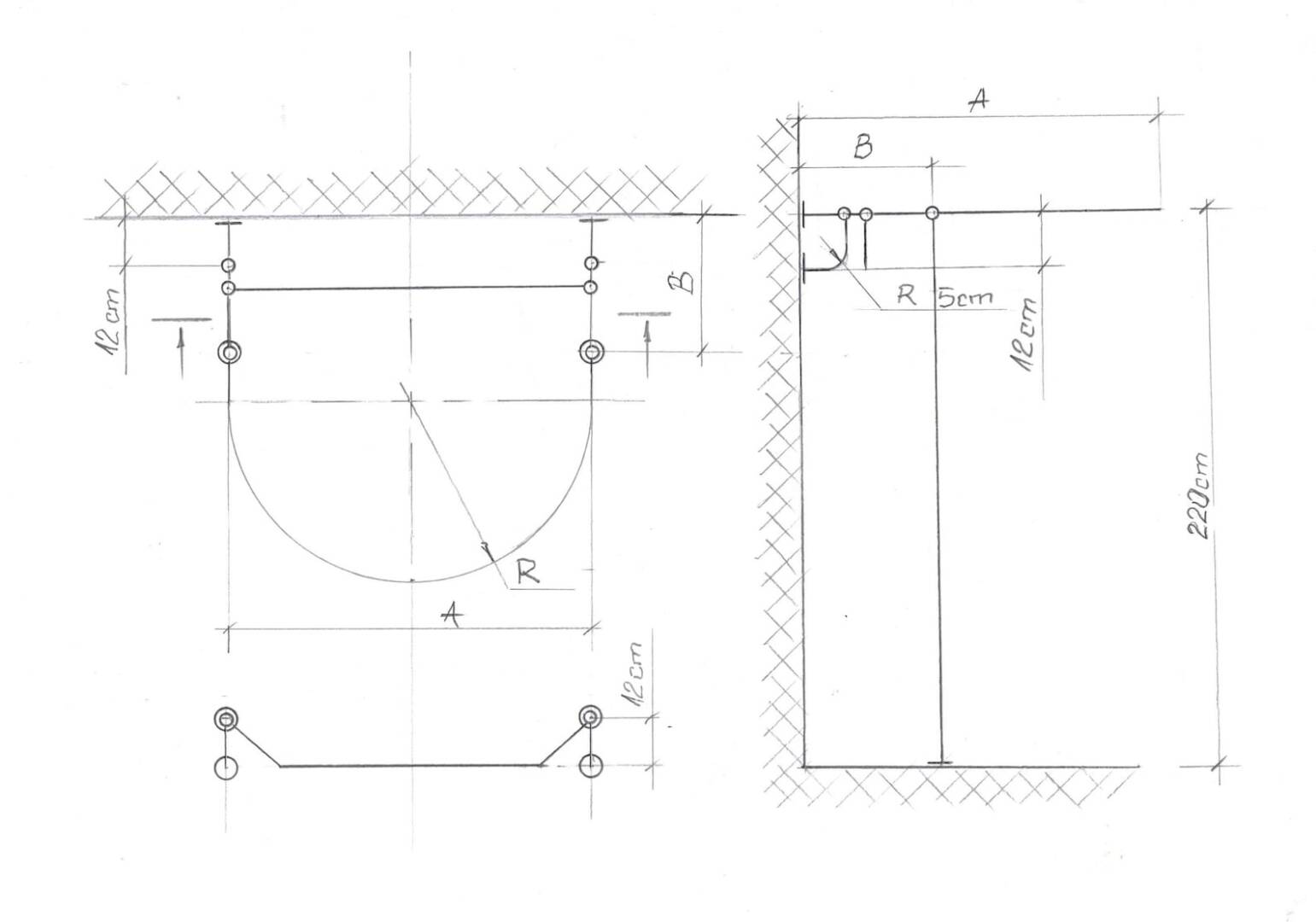 U shaped Standing Oval Fitting and Dressing Room with Clothes Hanger for Wall Mounting with 2 Straight Floor Supports- 220 cm(87″) High