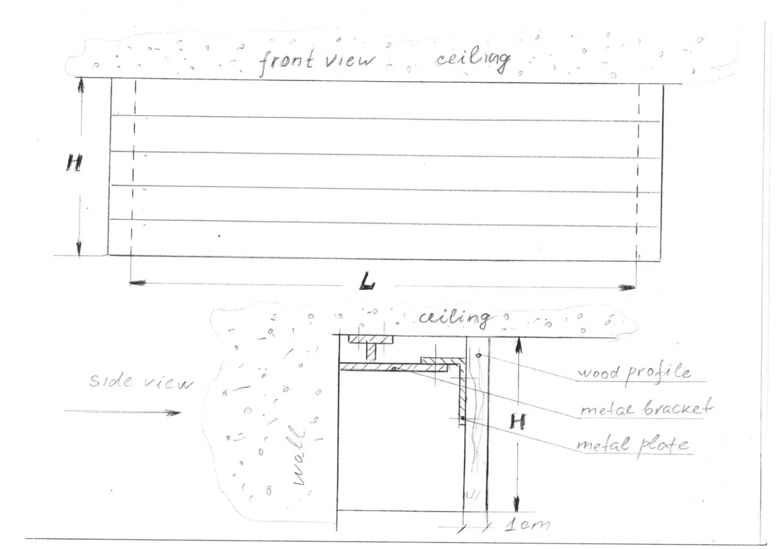 Window Valance, Cornice Board, Pelmet Box- Veneered MDF OAK Mod. 105, Ceiling Montage and Many Colors Finishes